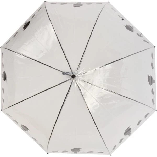 De afgeronde parapluvorm biedt tijdens het wandelen bescherming tegen hevige regenbuien. Dankzij het doorzichtig materiaal zie je wat er in de omgeving gebeurt. Met één druk op de knop vouwt het scherm open.
