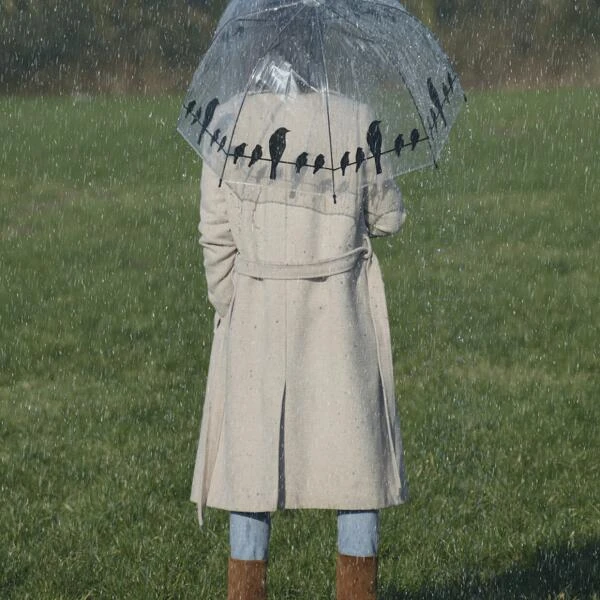 Laat de regen je dag niet verknallen met deze trendy paraplu! Deze transparante paraplu heeft rondom rond een leuke print van vogels die rusten op een draad.