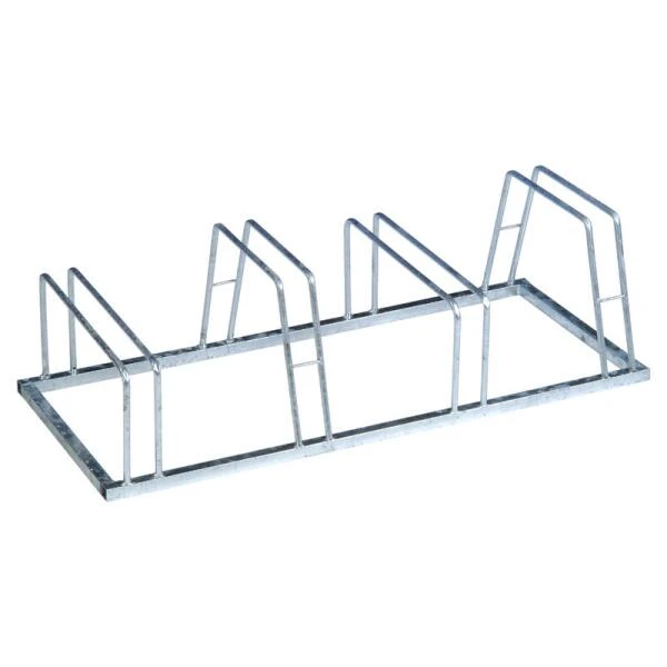 In dit gegalvaniseerde fietsenrek kan je tot 4 fietsen zetten. Door de verschillende hoogtes kan je de fietsen makkelijk in het rek zetten en er weer uit halen.