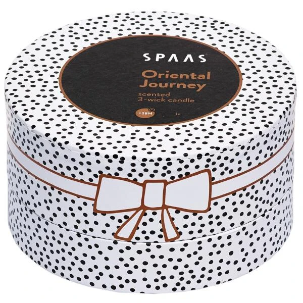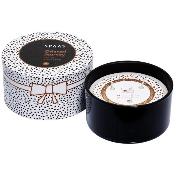 De kaars heeft drie wieken en zit in een stevig zwart glas. De kaars komt in een wit met zwarte geschenkverpakking waardoor dit het ideale cadeau is.