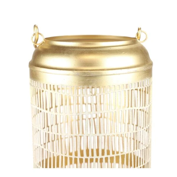 Mooie gouden lantaarn met een rechthoekjesmotief. Plaats er een kaars in en geniet van het mooie lichtspel. De lantaarn maakt jouw interieurdecoratie helemaal af!