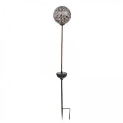 Mooie metalen tuindecoratie met een elegante solarverlichting. De meegeleverde oplaadbare batterij laadt overdag op door middel van het geïntegreerde zonnepaneeltje. Wanneer de avond valt, licht de bol automatisch op!