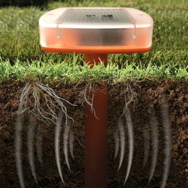 Laad de mollenverjager op in de volle zon en prik de hem op de gewenste plek. Door de trillingen en de sonische pulsen zal de mol een ander leefgebied opzoeken.
