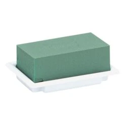 De foam wordt geleverd in een stevige kunststof schaal. Hou het pronkstukje lang vers door regelmatig bij te vullen met water.