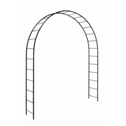De rozenboog is kwalitatief afgewerkt met een zwarte coating. De boog kan 34 cm in de grond worden gemonteerd, bij voorkeur in een zandcementfundering voor extra stevigheid.