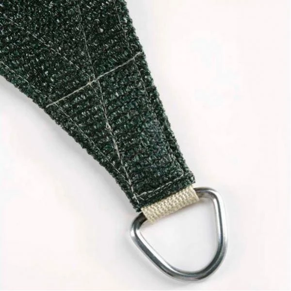 Het vierkante zeil heeft 4 verstevigde hoeken met bevestigingsringen zodat je het overal tussen 4 punten kan spannen. Het zeil heeft een donkergroene kleur en is voorzien van bevestigingstouwen.