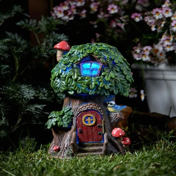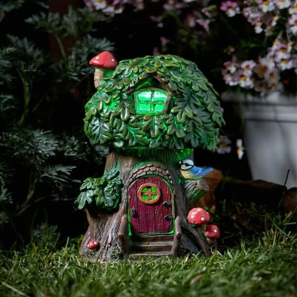 Je kan bovendien kiezen tussen warm wit of gekleurd ledlicht! Breng de magie in jouw tuin of woonkamer met deze met de hand geschilderde bomenhuisje in de vorm van een kleine eik!