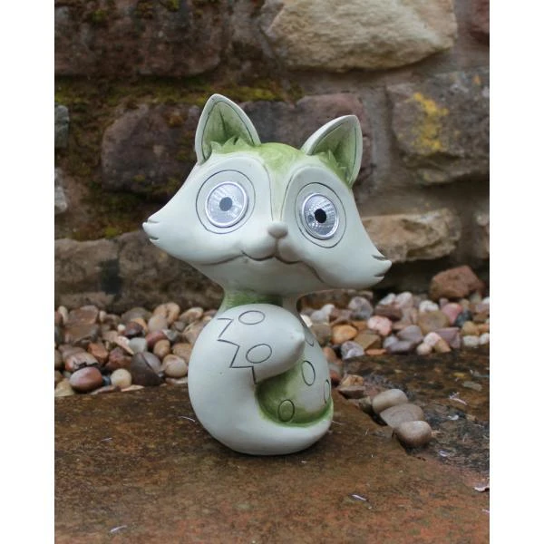Deze solar vos is een leuke tuindecoratie die met zijn verlichte ogen voor de nodige sfeer zorgt op jouw terras, bij de vijver of in de rotstuin. De grote ogen van de vos zijn twee led lampen die bij schemering oplichten en stralen.